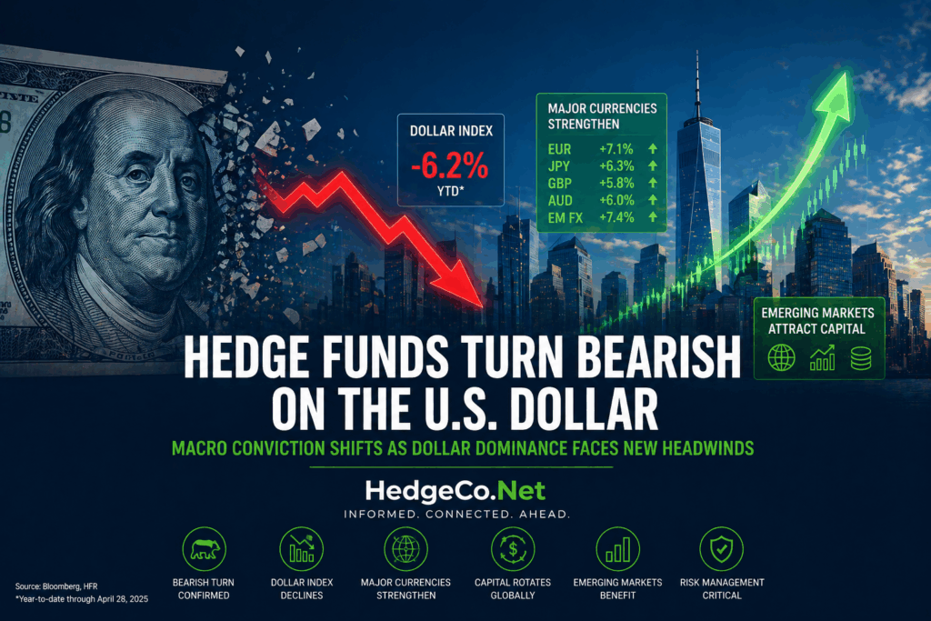 (HedgeCo.Net) A notable shift is emerging across global macro trading desks: hedge funds are increasingly positioning for a weaker U.S. dollar. After years of strength driven by interest rate differentials, safe-haven demand, and global uncertainty, the greenback is now facing a growing wave of bearish sentiment from some of the industry’s most sophisticated investors.