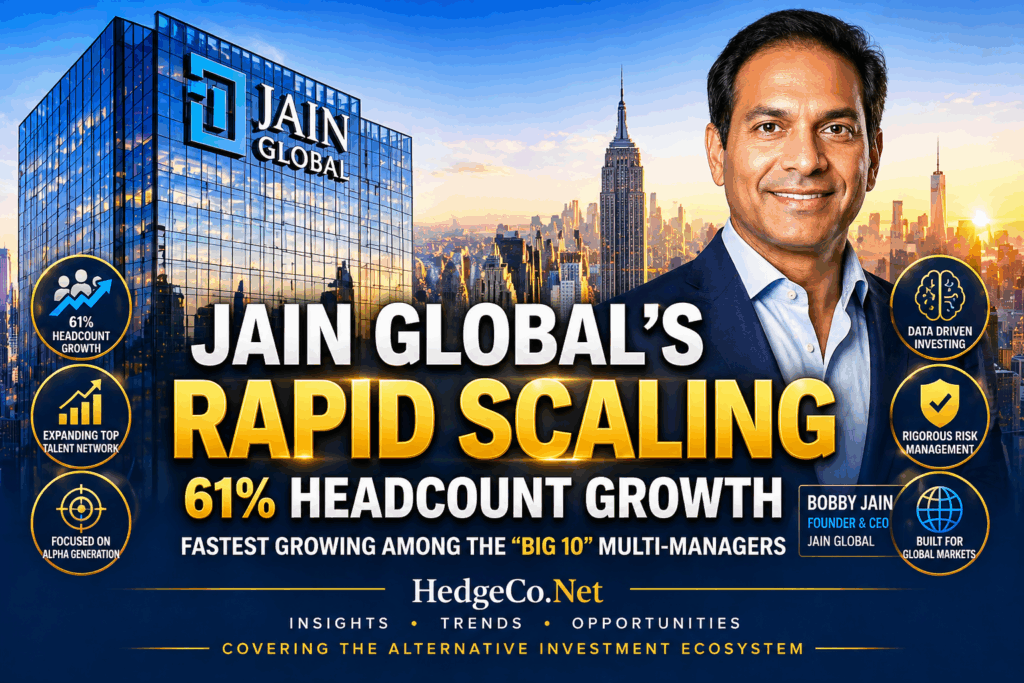 (HedgeCo.Net) In an industry where scale has increasingly become synonymous with survival, Jain Global is emerging as one of the most closely watched new entrants in the hedge fund ecosystem. Led by Bobby Jain, the firm has expanded its headcount by an extraordinary 61% year-over-year—making it the fastest-growing platform among the so-called “Big 10” multi-manager hedge funds.
