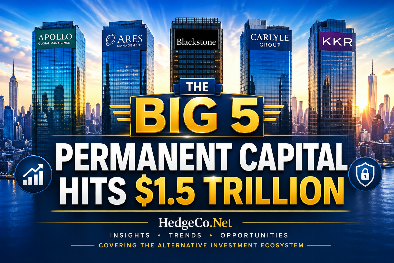 (HedgeCo.Net) The alternative investment industry has entered a decisive new phase—one defined not by quarterly performance volatility or redemption cycles, but by permanence. The world’s largest alternative asset managers—Apollo Global Management, Ares Management, Blackstone, Carlyle Group, and KKR—collectively referred to as the “Big 5,” now oversee approximately $1.5 trillion in permanent or perpetual capital. This milestone is more than a headline figure; it marks a structural reordering of the alternative investment landscape, with far-reaching implications for hedge funds, private markets, and institutional capital allocation.