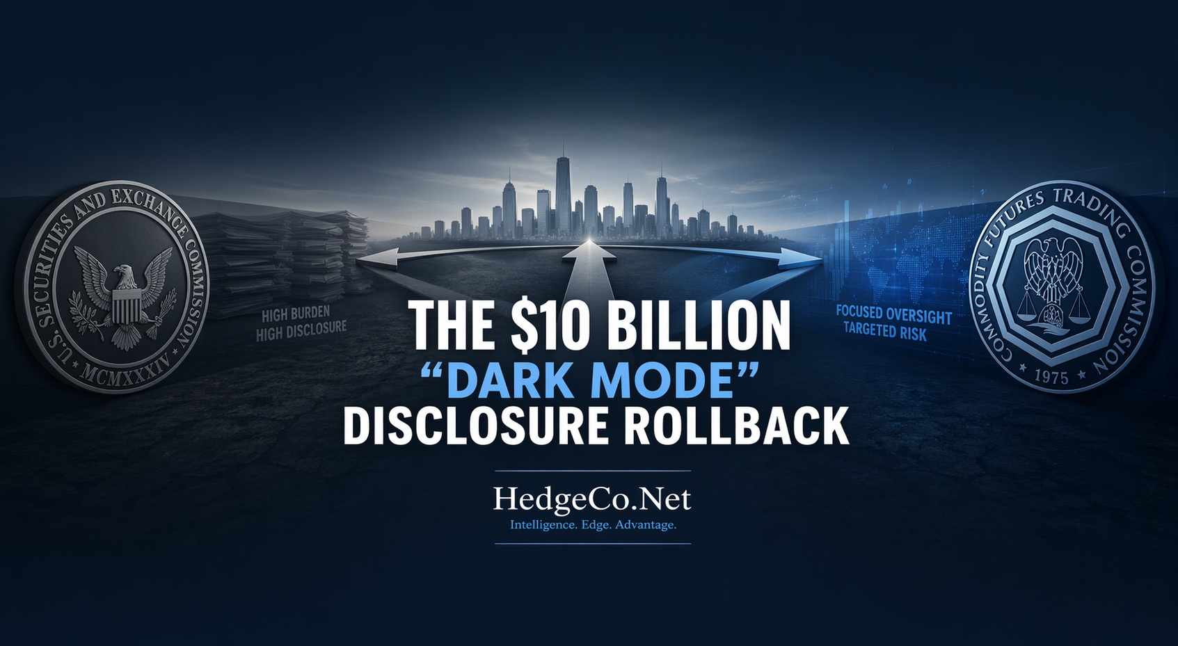 (HedgeCo.Net) In a move that is already being described across institutional circles as one of the most consequential regulatory pivots of the decade, the SEC and the CFTC have jointly proposed a dramatic overhaul of Form PF reporting thresholds—raising the definition of a “large hedge fund adviser” from $1.5 billion in assets under management to $10 billion.