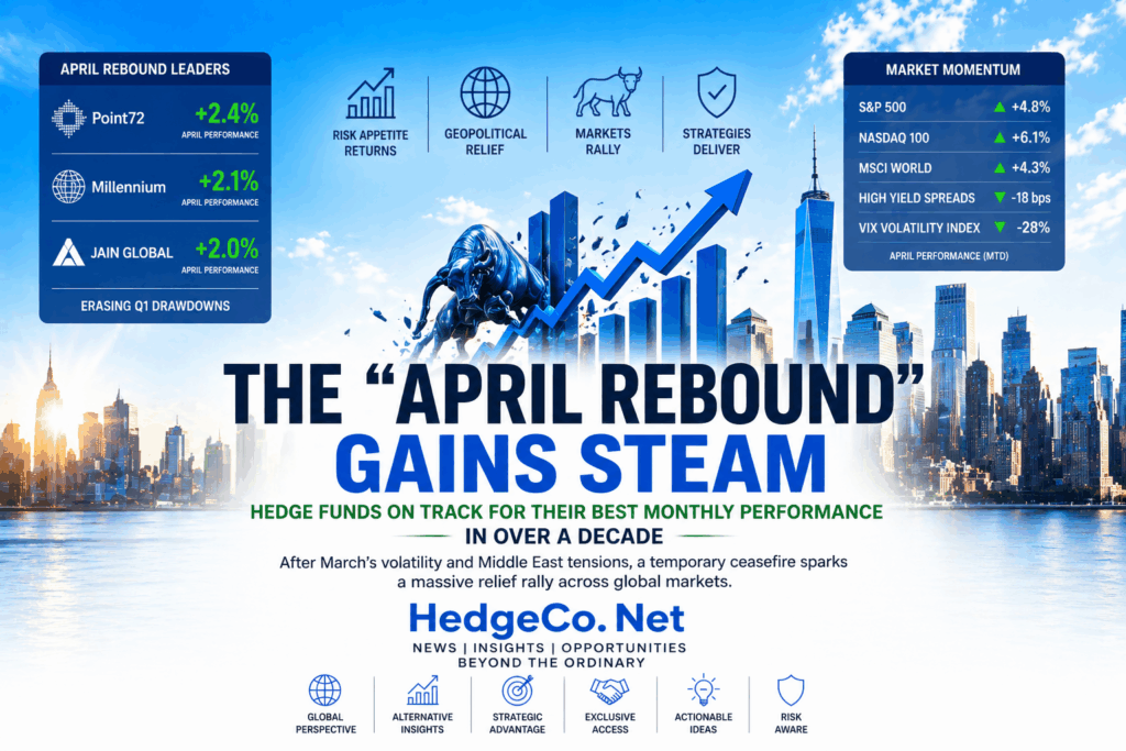 (HedgeCo.Net) After a volatile and, at times, deeply unsettling March, hedge funds are mounting a powerful comeback—one that is rapidly shaping up to be the strongest monthly performance in more than a decade. What began as a fragile stabilization has evolved into a broad-based rally across strategies, driven by a combination of geopolitical de-escalation, repositioning flows, and renewed risk appetite across global markets.