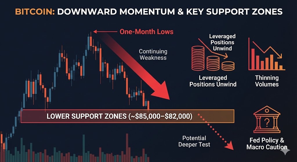 Analysts are now looking at lower technical support zones (~$85,000–$82,000) if downward momentum continues, signaling a potential deeper test of Bitcoin’s multi-week consolidation range. Some models see a path to these downside targets if the bounce fails to gain follow-through.