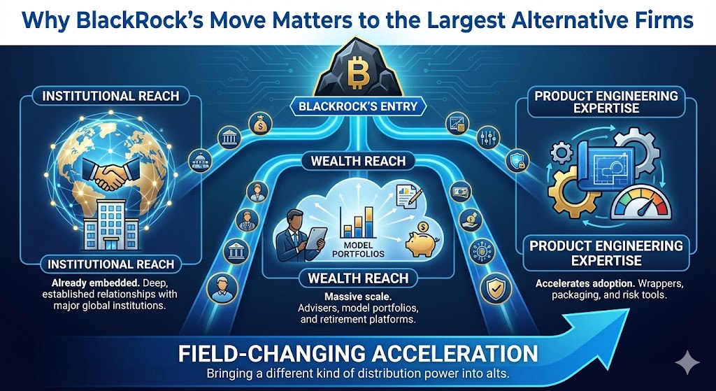 BlackRock’s move changes the field because it brings a different kind of distribution power into alts: