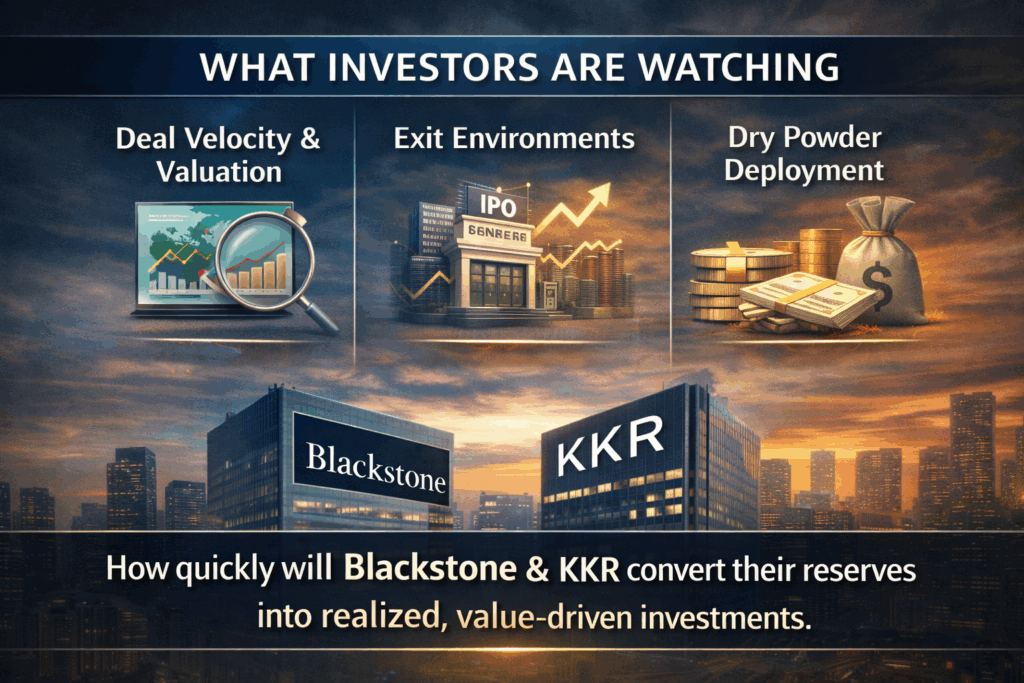 - Dry powder deployment: How quickly Blackstone and KKR convert their reserves into realized, value-driven investments.