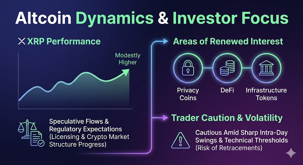 Beyond the top tokens, analysts highlight sectors like DeFi, privacy coins, and infrastructure tokens as areas of renewed interest. Yet, traders remain cautious amid sharp intra-day swings and technical thresholds that could trigger retracements.