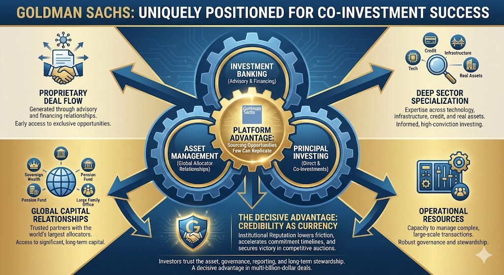 In a $2.8 billion co-investor deal, credibility is currency. Investors must trust not only the asset, but also the governance, reporting, and long-term stewardship of capital. Goldman’s institutional reputation lowers friction and accelerates commitment timelines—often a decisive advantage in competitive auctions.