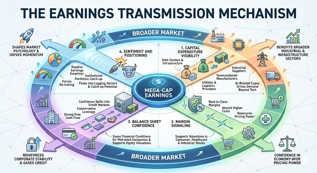 Mega-cap earnings this week could act as the accelerant. Strong results would reinforce confidence in corporate profitability, capital expenditure trends, and demand durability—conditions that benefit not just the largest firms, but their suppliers, competitors, and adjacent industries.