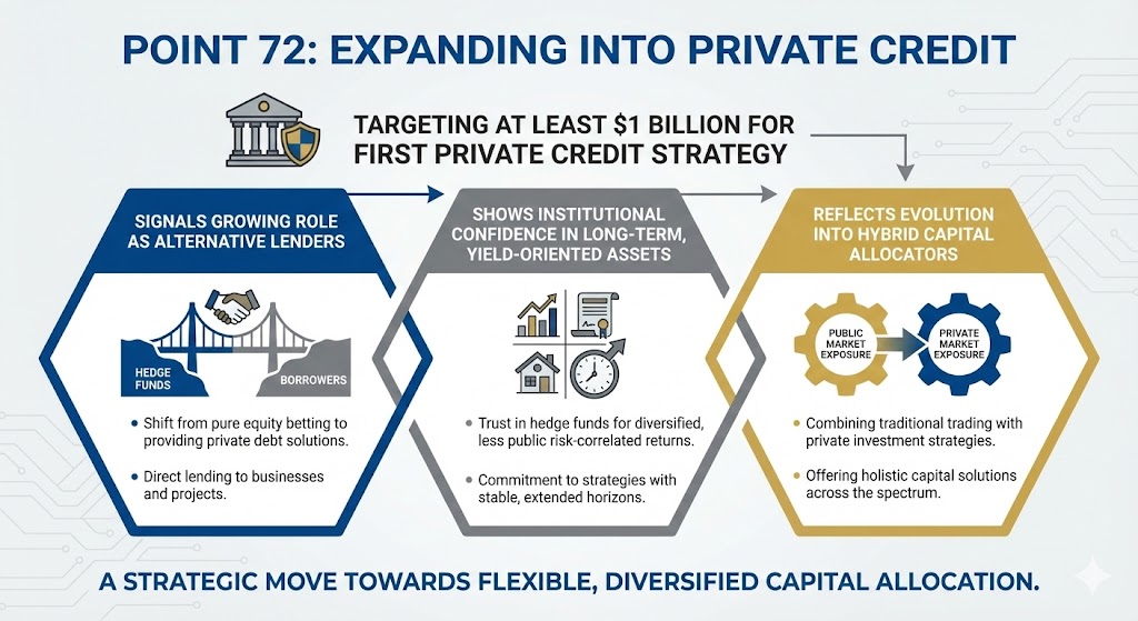One of the most talked-about developments surrounding Point72 is its venture into private credit — a strategic move that echoes a broader industry pattern where hedge funds compete with traditional credit allocators in yield-seeking niches.