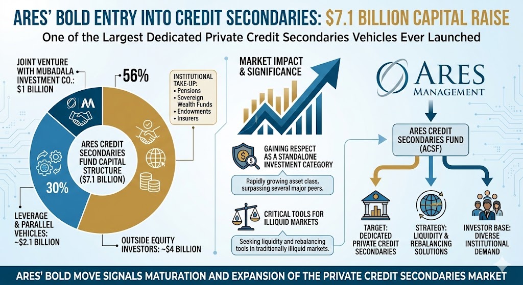 Bottom Line: Ares’ $7.1 billion credit-secondaries fund isn’t just a headline — it represents a structural evolution of how private credit is traded, accessed and integrated into diversified portfolios.