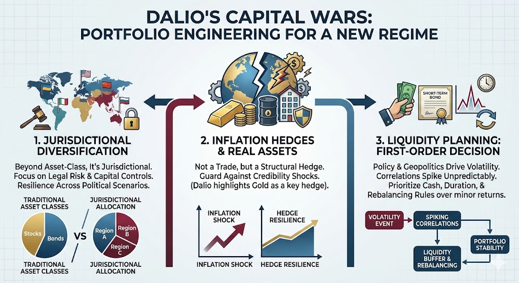 The mistake many investors make with Dalio is to treat him like a forecaster. That’s not where his value is highest. His value is in mapping the terrain. If Dalio is right that “capital wars” are an emerging feature of the regime, the practical implications show up in portfolio engineering: