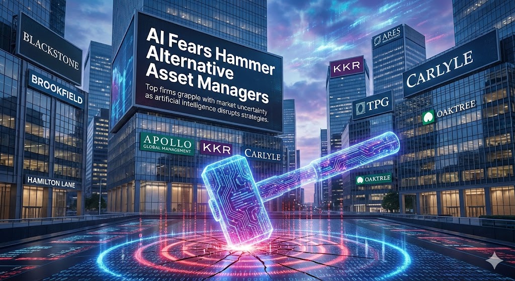 (HedgeCo.Net) Alternative asset managers are learning—again—that markets don’t need a recession to punish a business model. They only need a credible narrative that compresses future cash flows. In early 2026, that narrative has a clear label: AI. Not AI as a growth engine, but AI as a force that could reprice fees, reshape distribution, and erode the “human edge”that many alternative strategies have long sold as their moat. The result is a new kind of drawdown across parts of the alternatives complex: not purely performance-driven, but multiple-driven—a valuation reset rooted in fear that technology changes the economics of active management faster than firms can adapt.