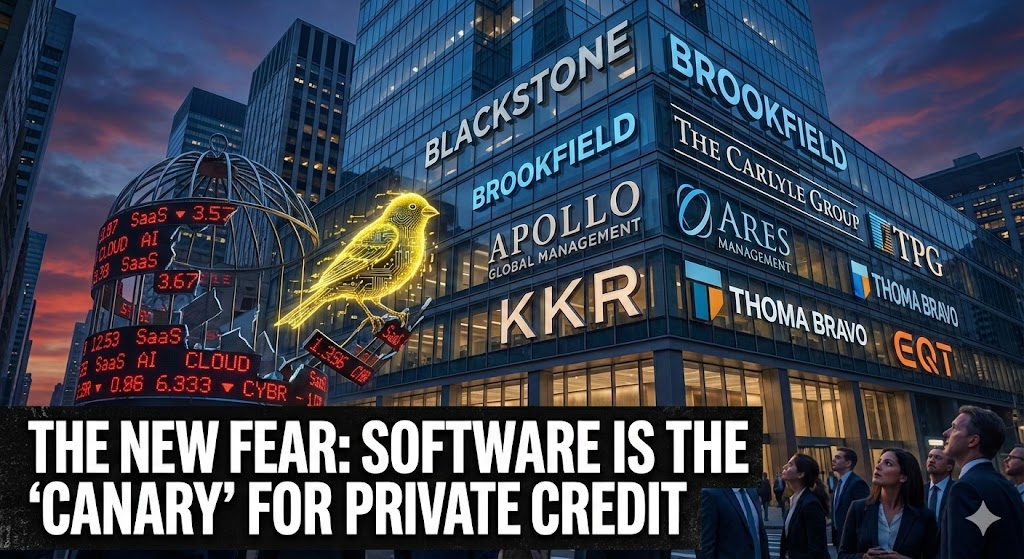 Smaller credit shops can hide. The mega-managers can’t—because they are public, scaled, and systemically important to private markets. Their stocks become the “index” for sentiment around private credit and private equity. When the market worries that software cash flows may be less durable, it sells the bellwethers first.