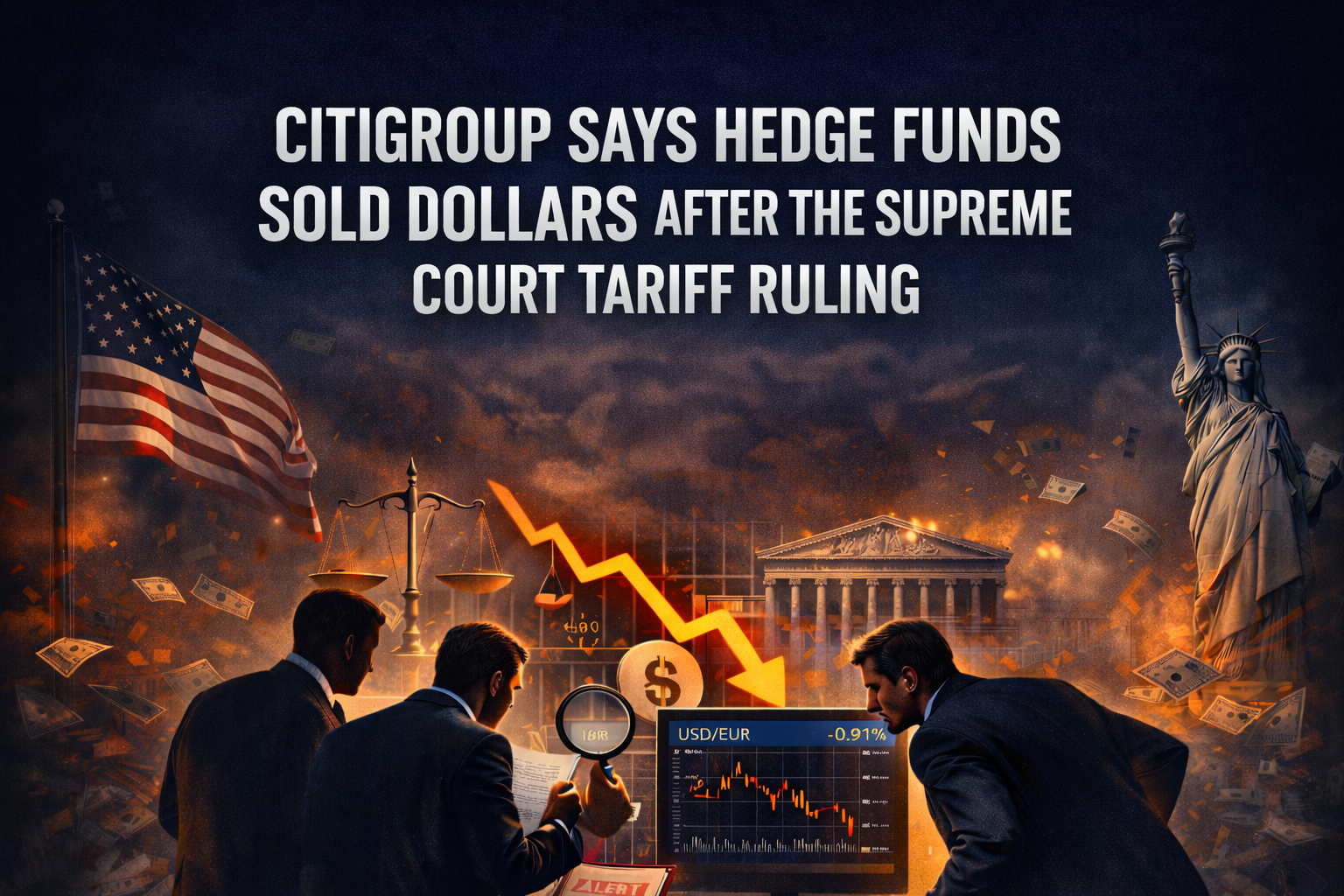 (HedgeCo.Net) When Citigroup told clients that its hedge fund customers were net sellers of the U.S. dollar around the market’s reaction to a U.S. Supreme Court decision striking down President Donald Trump’s emergency-law tariffs, it sounded like a narrow flow note—interesting, but tactical. In reality, it’s a compact snapshot of how sophisticated capital responds when trade policy, legal risk, and macro positioning collide