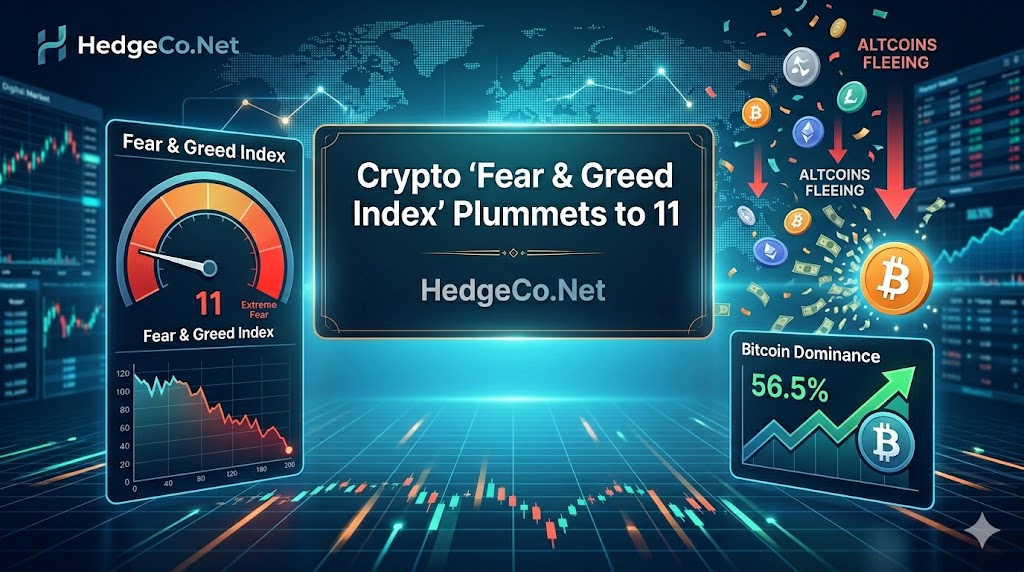 (HedgeCo.Net) — The cryptocurrency market has entered one of its most fragile psychological states in recent memory, with the widely followed “Fear & Greed Index” collapsing to a reading of 11—firmly in “Extreme Fear” territory. While such readings often coincide with heightened volatility and forced liquidations, they also provide a window into deeper structural dynamics unfolding beneath the surface of digital asset markets.