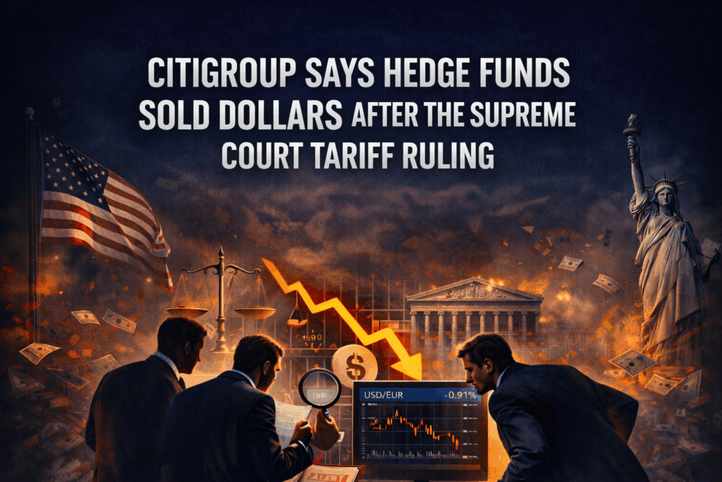 (HedgeCo.Net) When Citigroup told clients that its hedge fund customers were net sellers of the U.S. dollar around the market’s reaction to a U.S. Supreme Court decision striking down President Donald Trump’s emergency-law tariffs, it sounded like a narrow flow note—interesting, but tactical. In reality, it’s a compact snapshot of how sophisticated capital responds when trade policy, legal risk, and macro positioning collide.
